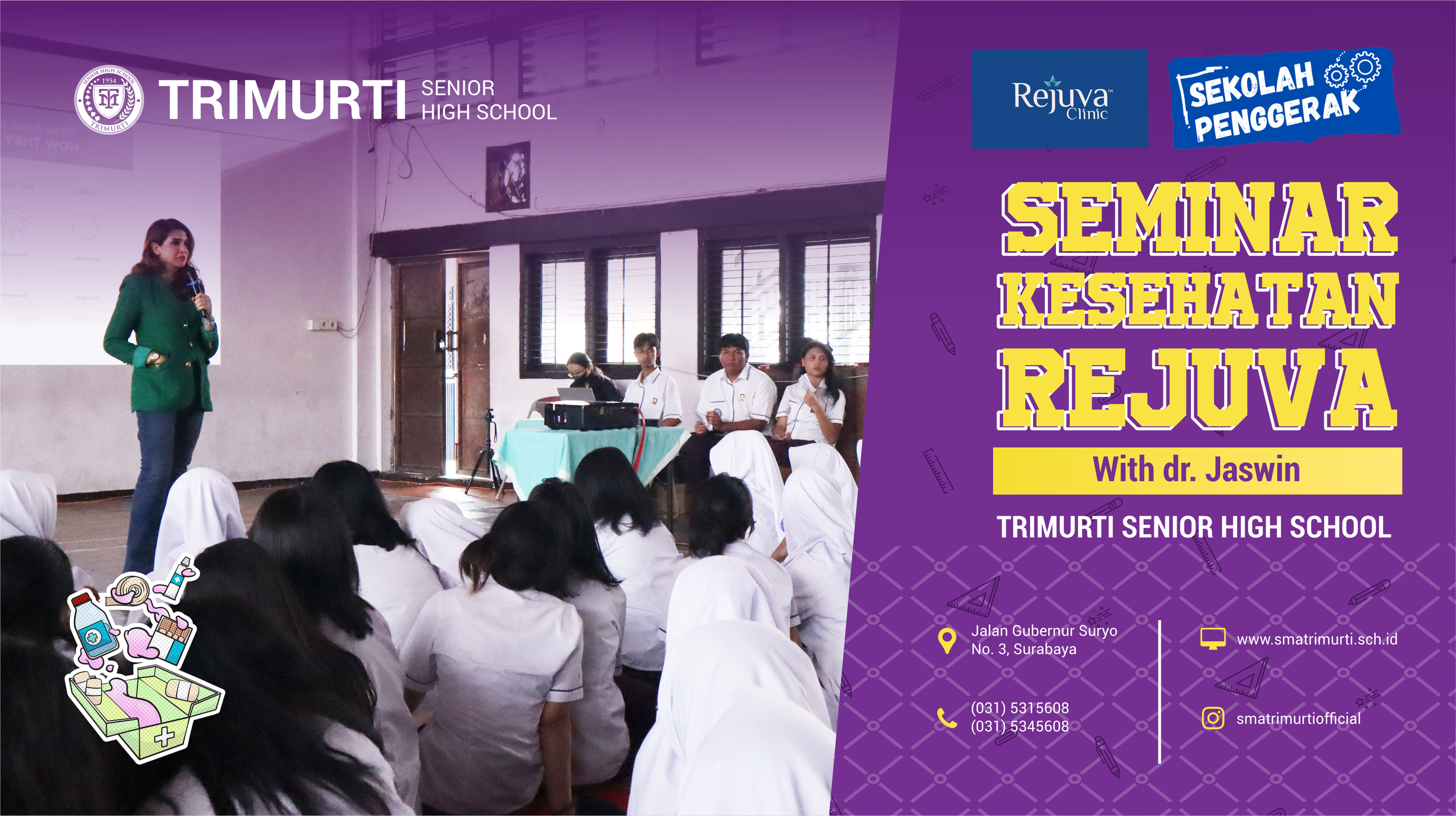 Surabaya, 20 Februari 2024 – TRIMURTI SENIOR HIGH SCHOOL kembali muncul dengan kegiatan kerennya yaitu Seminar Kesehatan Rejuva✨